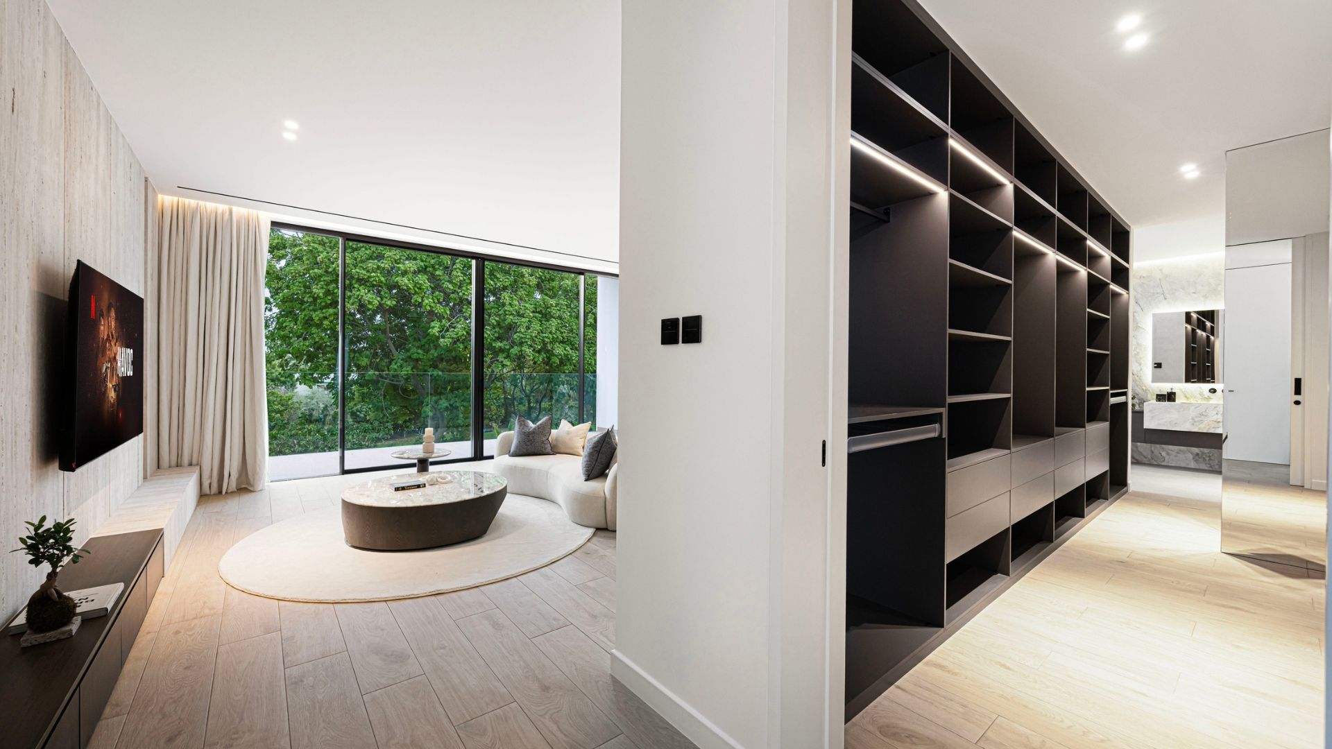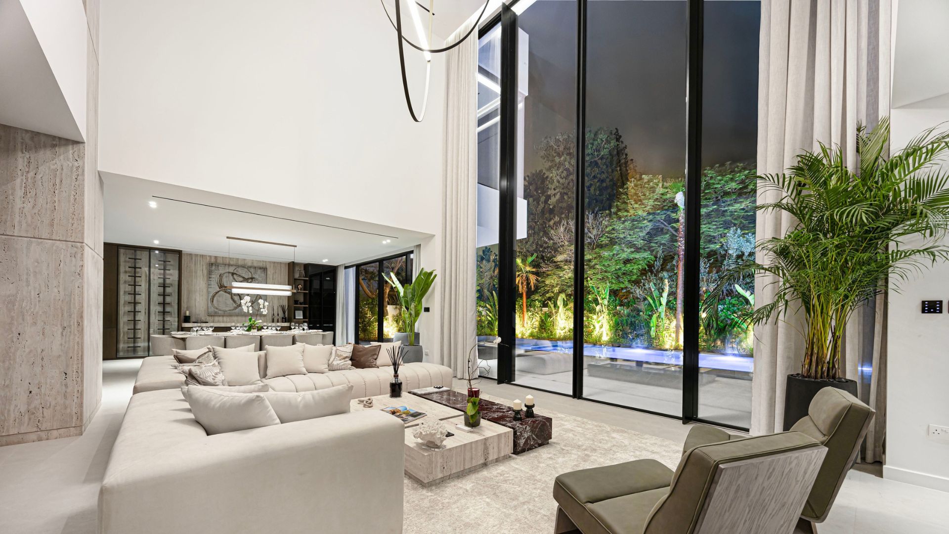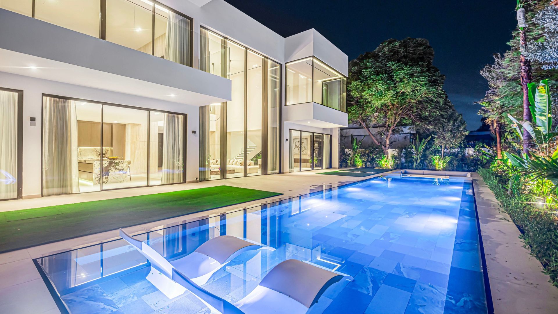 Experience the pinnacle of refined living with this super-prime villa in The Nest at Al Barari. Designed to seamlessly merge architecture with nature, the residence features a breathtaking 7m motorised sliding glass façade, opening onto lush greenery and bathing the 1,000 sq.ft. open-plan living area in natural light. With five master suites, each boasting its own private en-suite, the home blends elegance with privacy. Outside, a tropical landscaped garden creates a serene sanctuary, complemented by a 15m resort-style pool for ultimate relaxation and entertaining. Perfectly positioned in the prestigious Nest enclave, this villa also offers direct access to the community’s park and lagoon — an address where tranquility meets exclusivity.